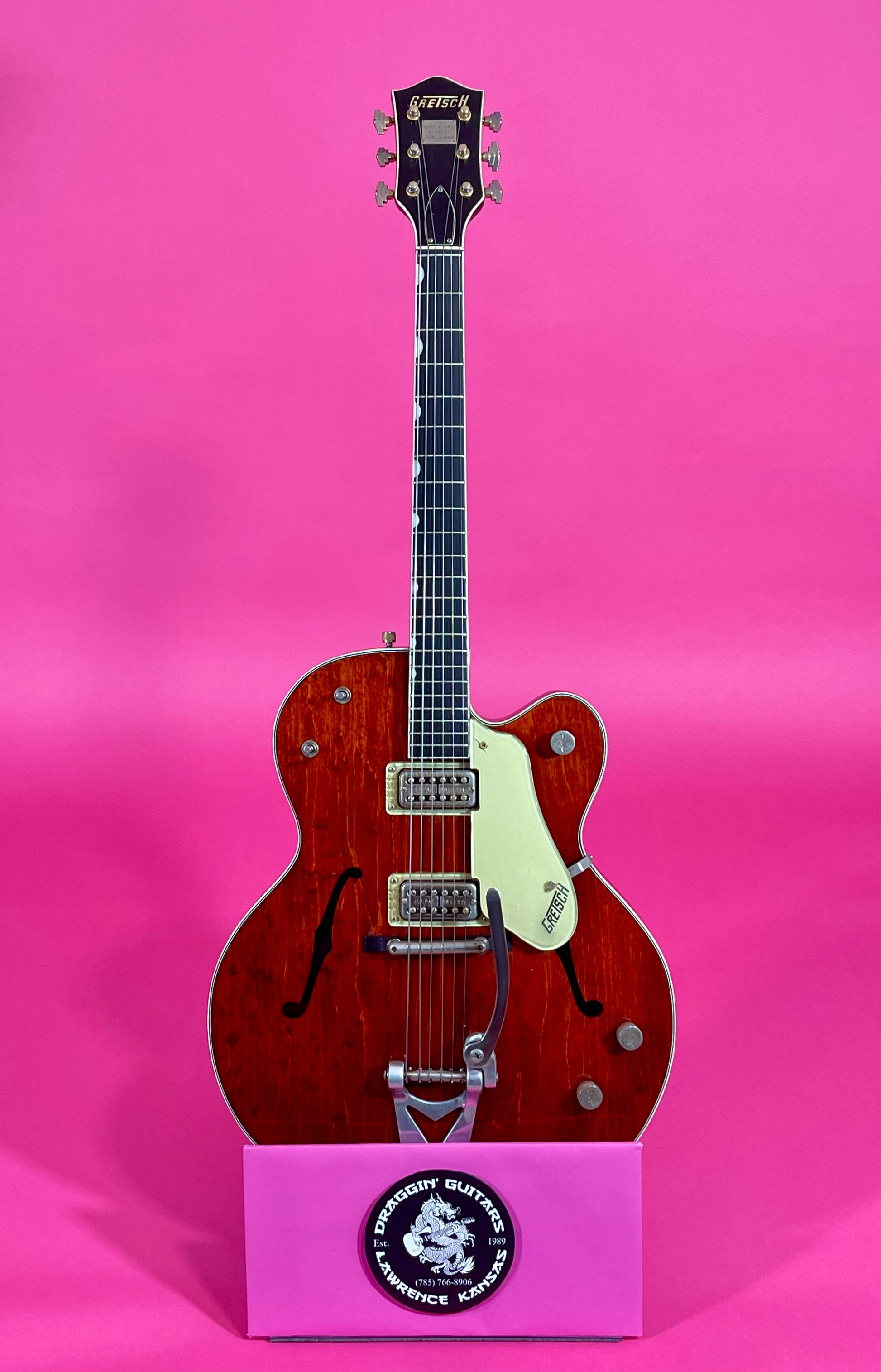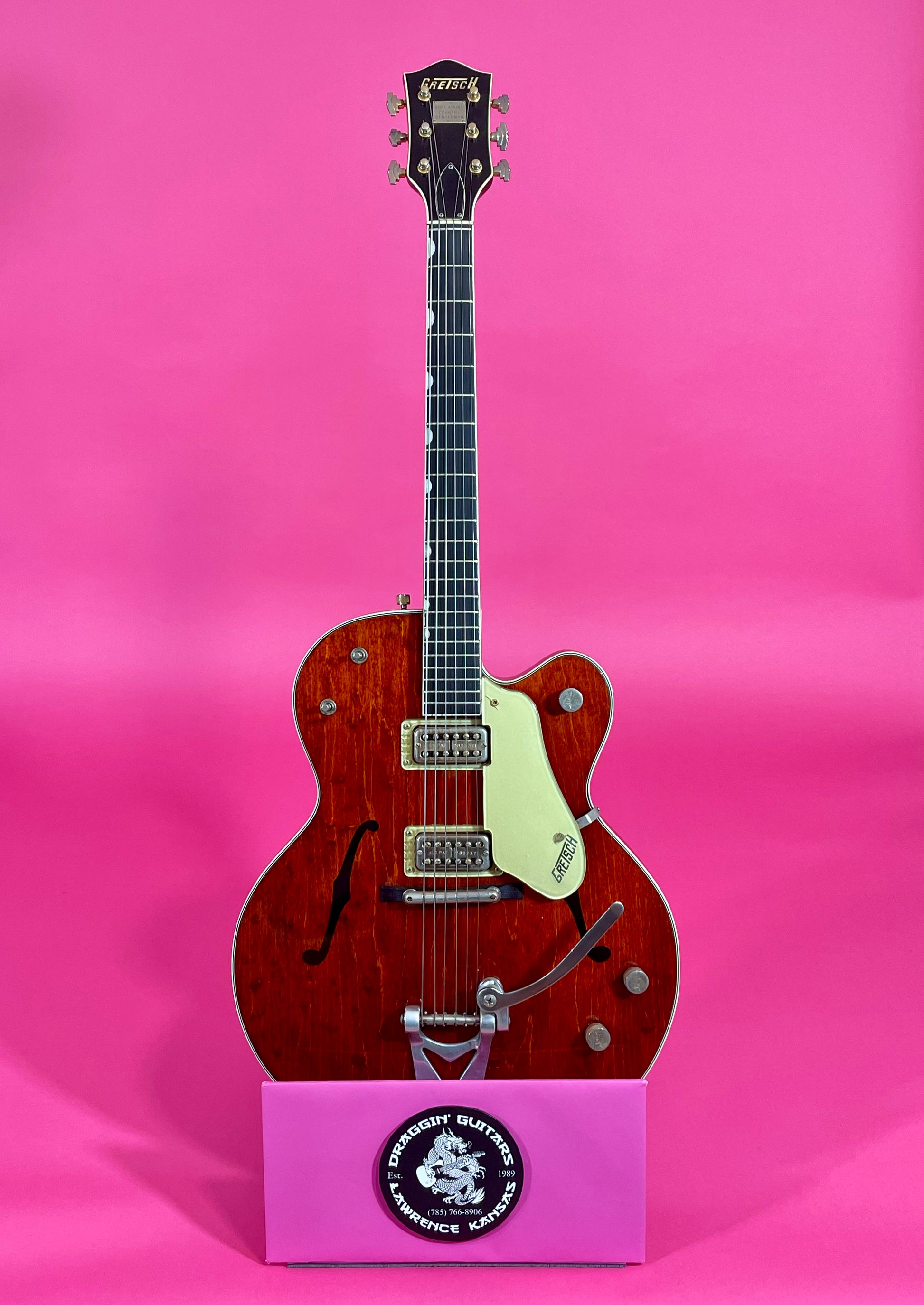 Here is a stunning example of a vintage 1960 single-cutaway Gretsch 6122 Country Gentleman. This guitar was produced at the original Gretsch factory in Brooklyn New York, U.S.A. in 1960. The guitar is in excellent condition and really solid. The binding is super clean and free of any issues which seem to haunt so many vintage Gretsch guitars from this era. The finish glows and is nice and glossy. The guitar is completely original and has professionally had a neck reset-which is virtually impossible to detect. You can see a black line around the neck joint ONLY with a black light-it looks like the factory neck set. Without a blacklight, the entire area around the neck joint looks clean and original. It is a One-owner unit and has been sitting under the bed for a very long time-until now. The guitar was obvious very well-cared for and it has been set up and needs nothing-it is totally ready to rock!