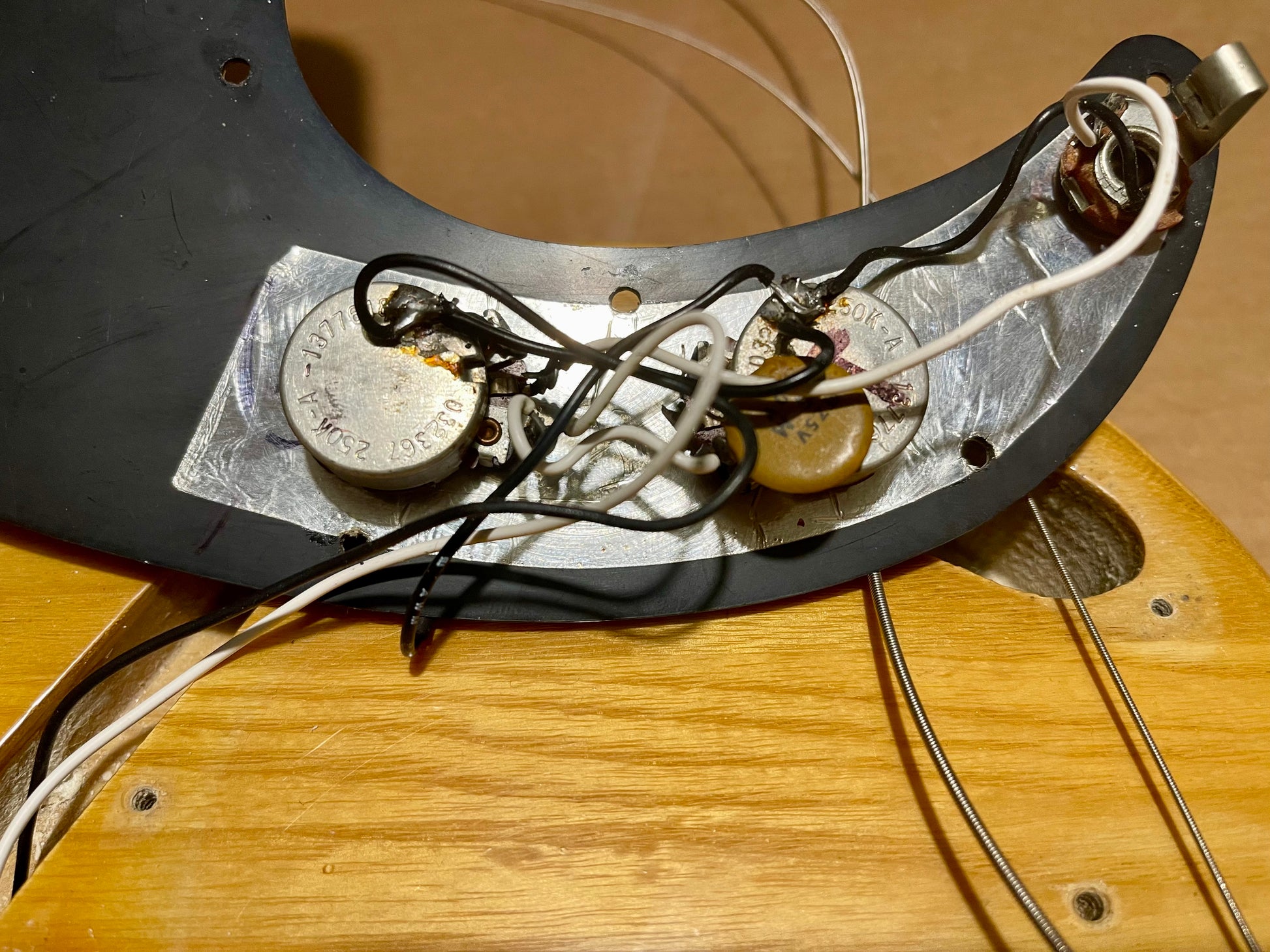 The tone is the classic P-Bass: thundering low end with clarity and incredible compression-especially for a maple fingerboard. The pickups have an excellent signal and measure 10.67 Ohms. The volume and tone controls operate smoothly and quietly. The original CTS potentiometers date to the 18th week of 1976. The bridge is super clean and fully functional.