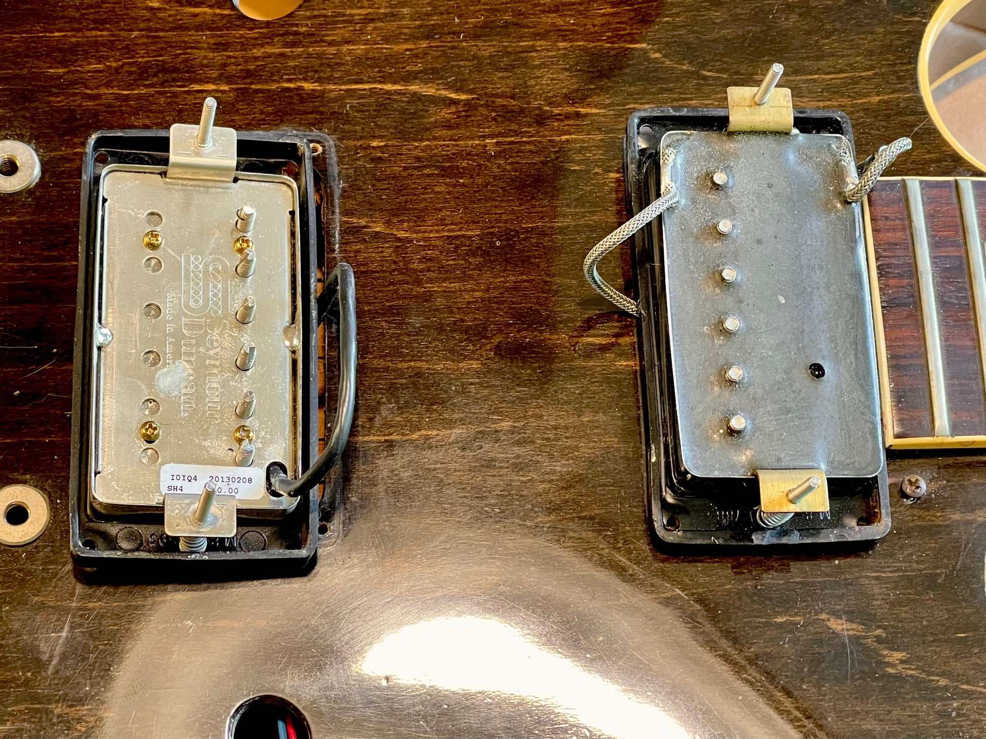 Th pickups both have an excellent signal and the guitar sounds nice and hot! it really cooks. The JB in the bridge is perfect for driving your amp and the neck position sounds smooth and full. I believe the volume potentiometers were replaced years ago with proper spec pieces-I believe the tone potentiometers are original. They all function smoothly and quietly. The original pickguard was removed long ago.