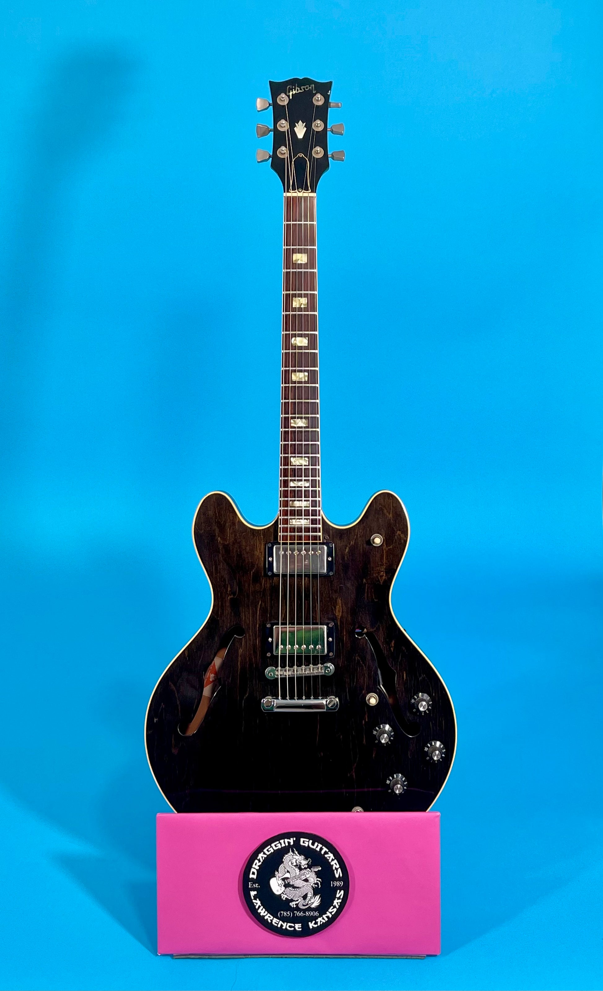 Here is a real cool vintage 1979 Gibson ES-335-TD in original Walnut finish. This guitar is solid with no breaks, no cracks, no repairs. The original Trapeze tailpiece was removed and the stop tailpiece was added in the correct spot. The bridge pickup has been changed to a classic high output Seymour Duncan JB and the original Gibson high output superhumbucker aka "tarback" is in the neck position. The front coil tap switch has been bypassed. The body is solid and the finish is nice and dark with typical signs of handling evidence: small pecks here and there and various light rubs etc.-see photos. The neck angle is great and the neck joint is solid with no issues.