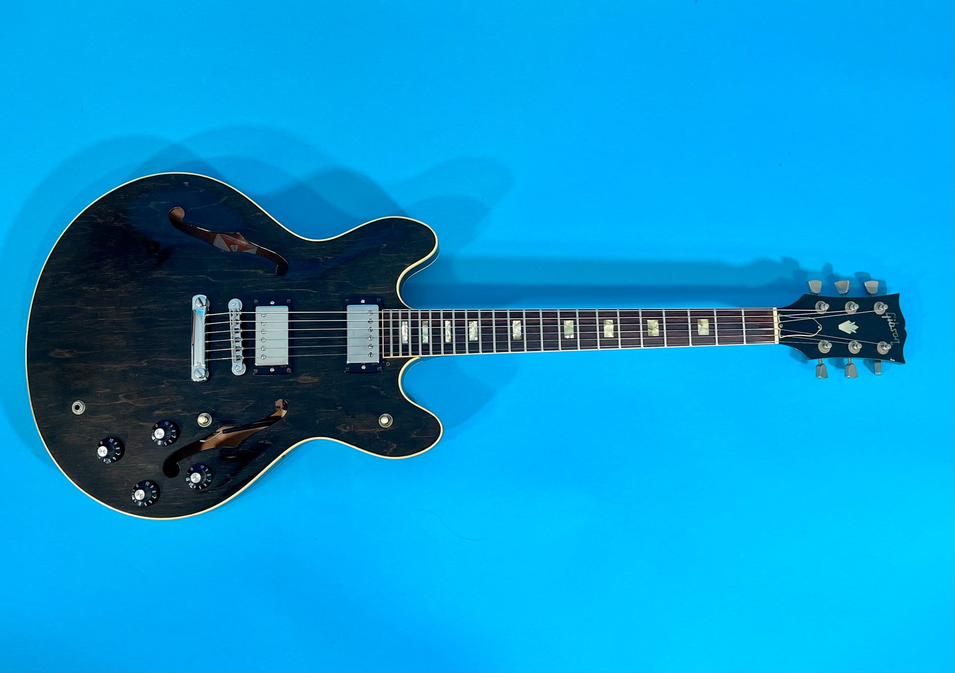 The guitar is a great player's piece and sounds and plays as good as it looks. A full sized used aftermarket case is included-one latch is missing but the case functions fine.