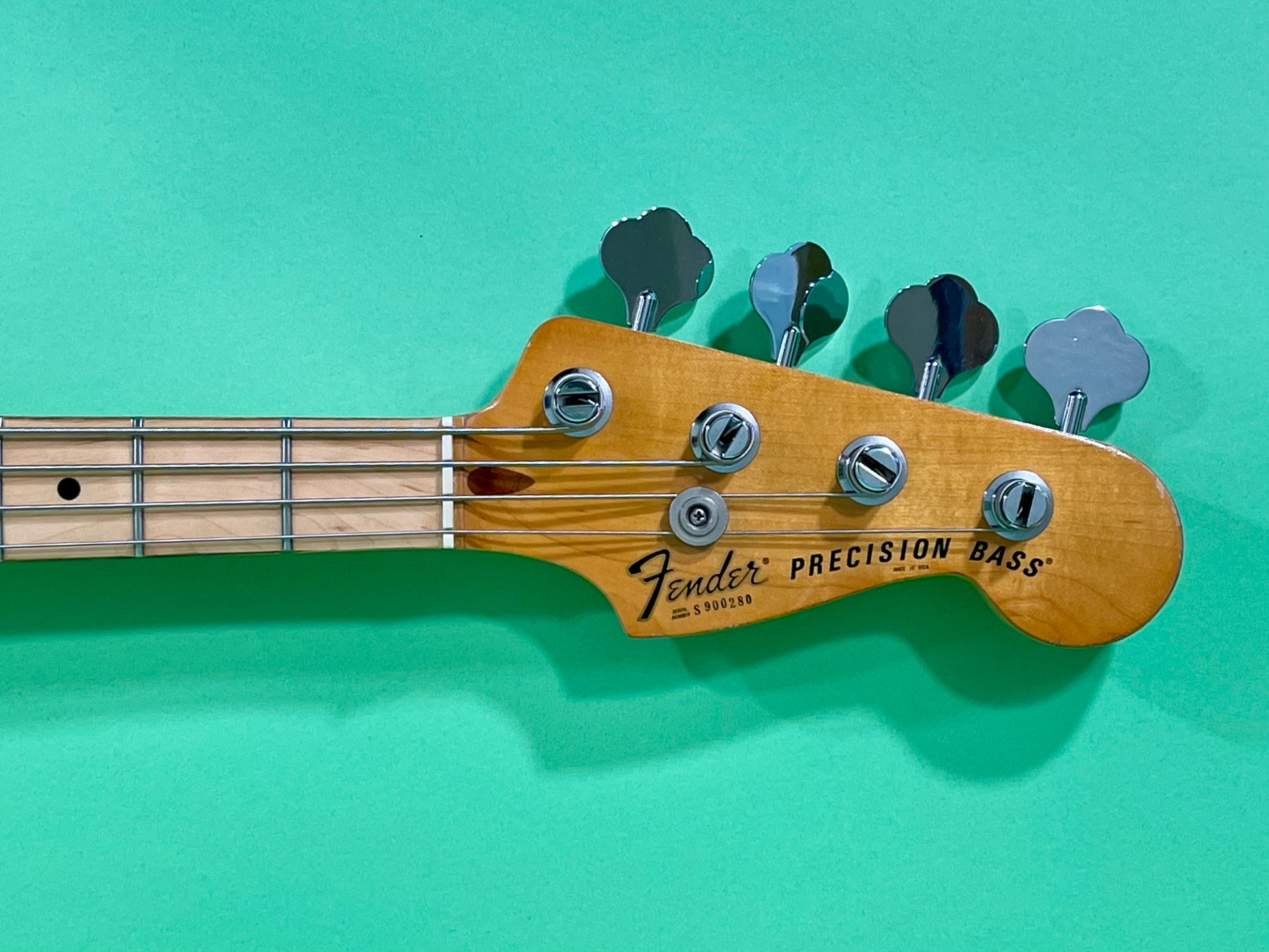 The bass weighs 10.19 lbs. and it feels nice and comfortable in your lap or on a strap. The body has clean lines and looks fabulous in every light. This is a really rare Precision Bass-as I can't ever recollect seeing another one in this striking finish.