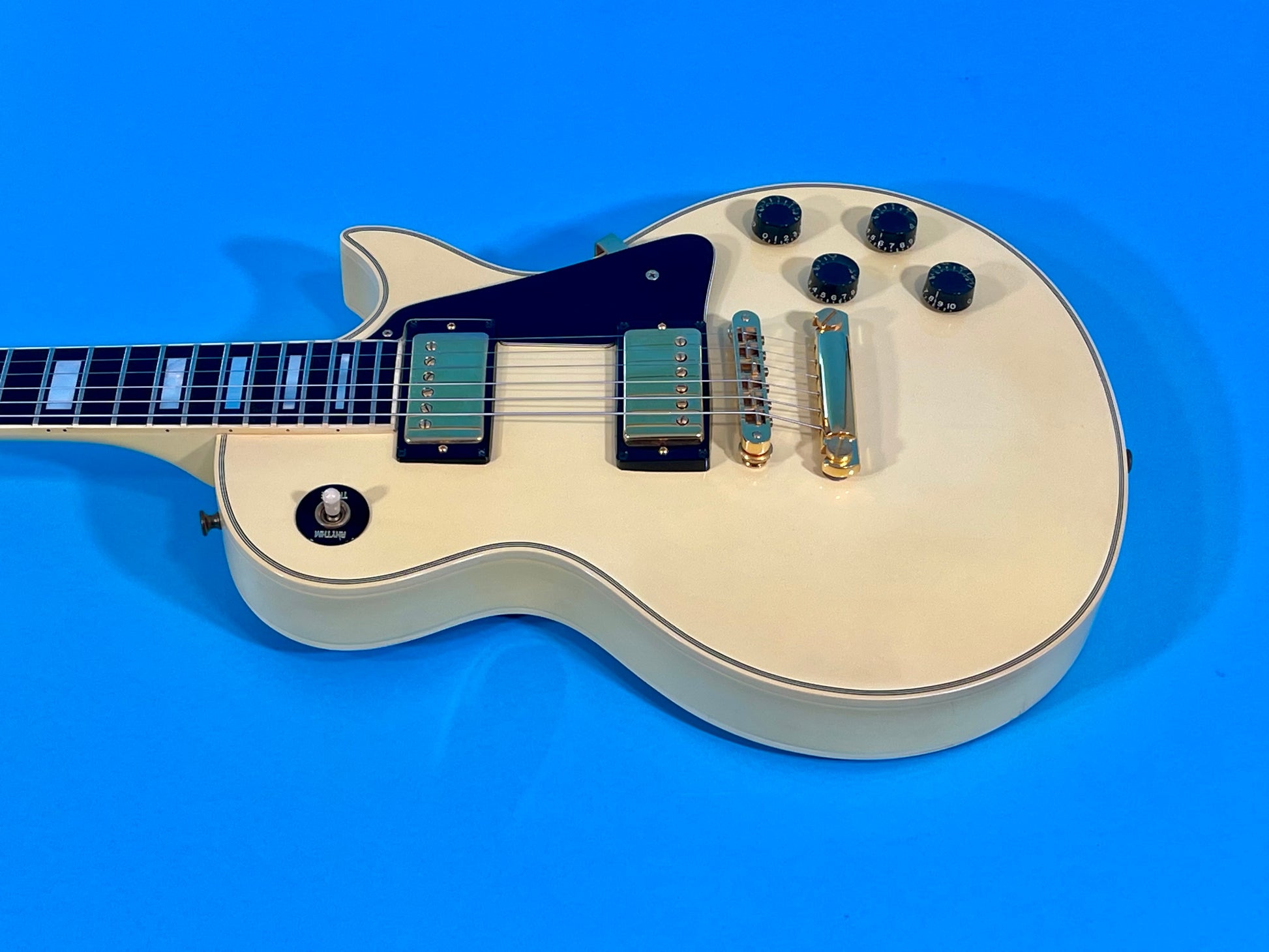 Ahh yes! One of my favorite Gibson guitars of all time: 1981 Les Paul Custom in Alpine White finish. This color just kills on a Les Paul Custom. That creamy white color is just delicious! I have one in my personal collection just like it-well, not as clean but the same model. Noteworthy players include Randy Rhodes, The Edge, Jimmy Page, Mick Ronson, Eddie Van Halen, Dave Grohl, Mike Campbell and John Geery. This example is in EXCELLENT condition and super clean. It comes with original Owner's manual AND the Gibson Warranty paper that has never been filled out...how cool is that? It is 100% original including the highly coveted Tim Shaw pickups. The guitar was produced at the Gibson factory in Nashville Tennessee, U.S.A. on a Thursday- March 19th 1981. It is solid with no cracks, repairs or funny business. It is set up and ready to play-it needs nothing.