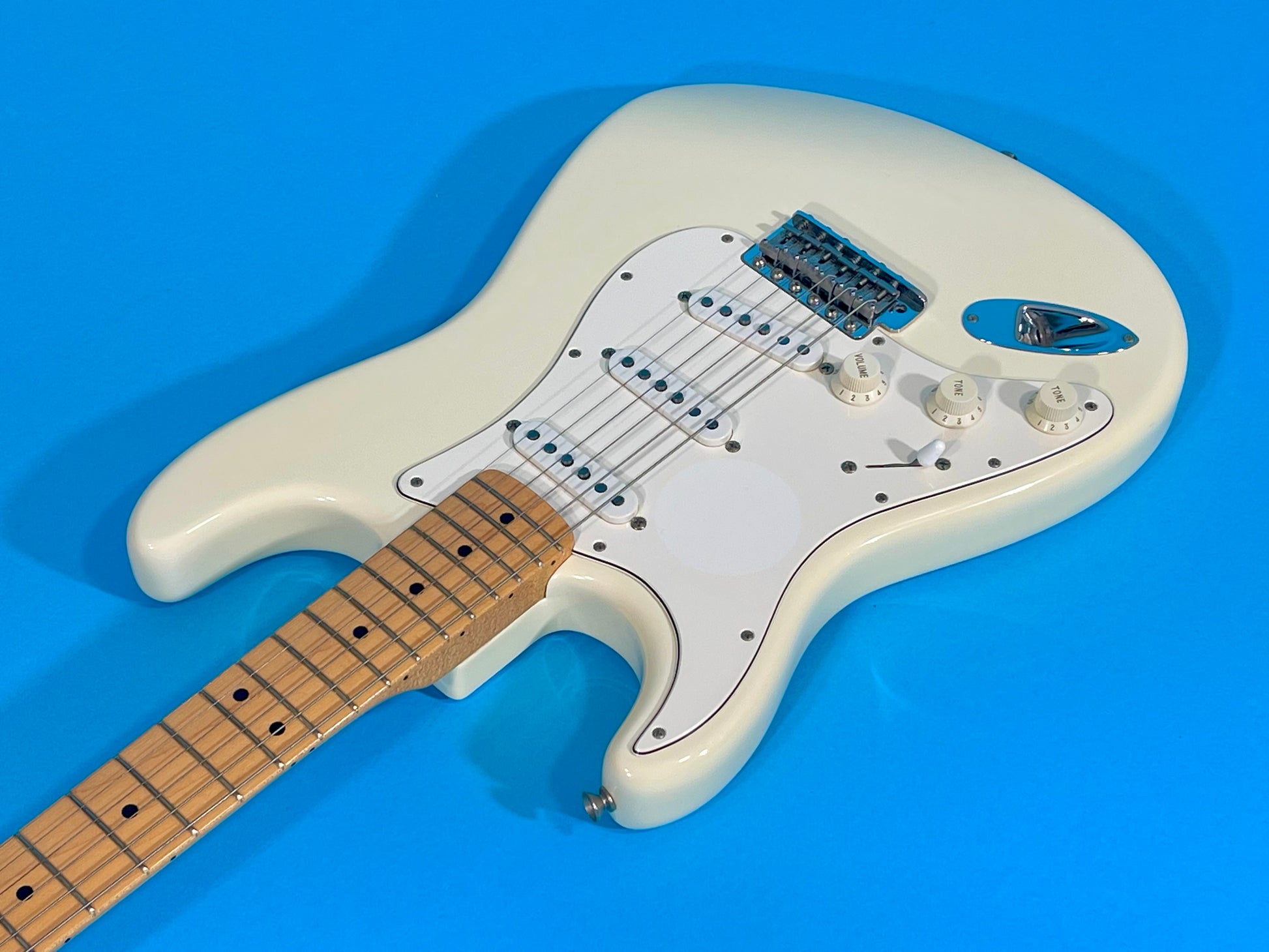 This amazing piece of Fender history was made in 1997 as the 1st run of the Limited Edition Jimi Hendrix Stratocaster. It features ALL of the Woodstock guitar's details including staggered pole piece pickups, Big CBS headstock, Synchronized Tremolo logo, Olympic White finish and most importantly: the correct Maple cap neck that gave that guitar its unique tone. This guitar comes complete with ALL of the case candy-and Im talking candy store clear out...even the original pickguard sticker is included! This is a collector's dream for sure. This guitar was purchased new back in 1997-played once or twice and then put under the bed for safe keeping. It has remained uncirculated since then until now! Guitar is 100% original and in perfect mint condition.