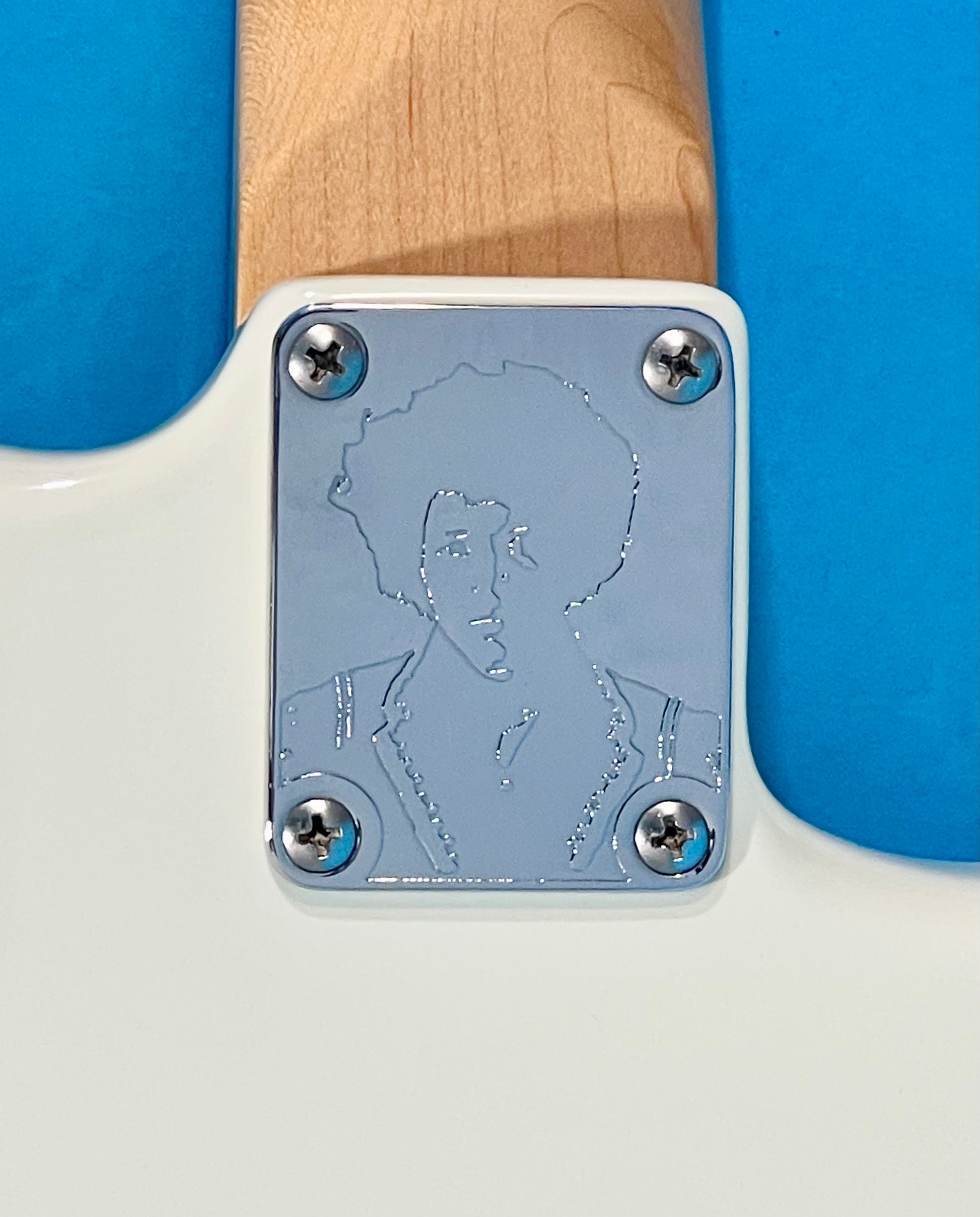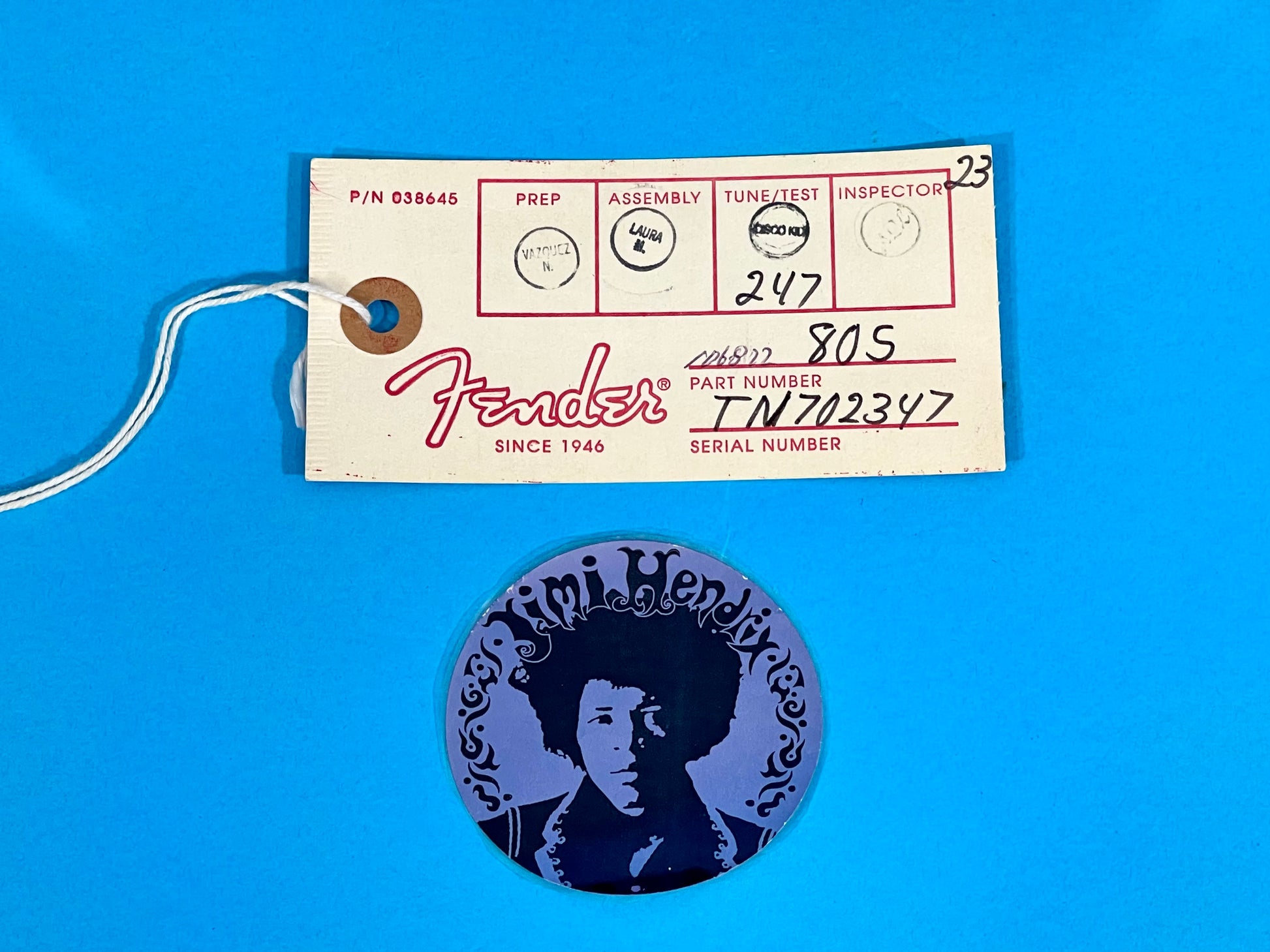 This guitar is a super-rare Collector's dream. It would make the ultimate gift for the Hendrix fan. Comes with original Fender hard case, original keys, white coil cord, bridge cover, various fender hang tags, inspection card, certificate, stickers and additional vibrato springs. Please note: on the inspection tag; someone at the factory made a mistake on one of the digits of the serial number-they wrote down 2 when it is obviously a 3…kinda neat! Just adds a nice personal human touch in this world of electronic AI crapola.