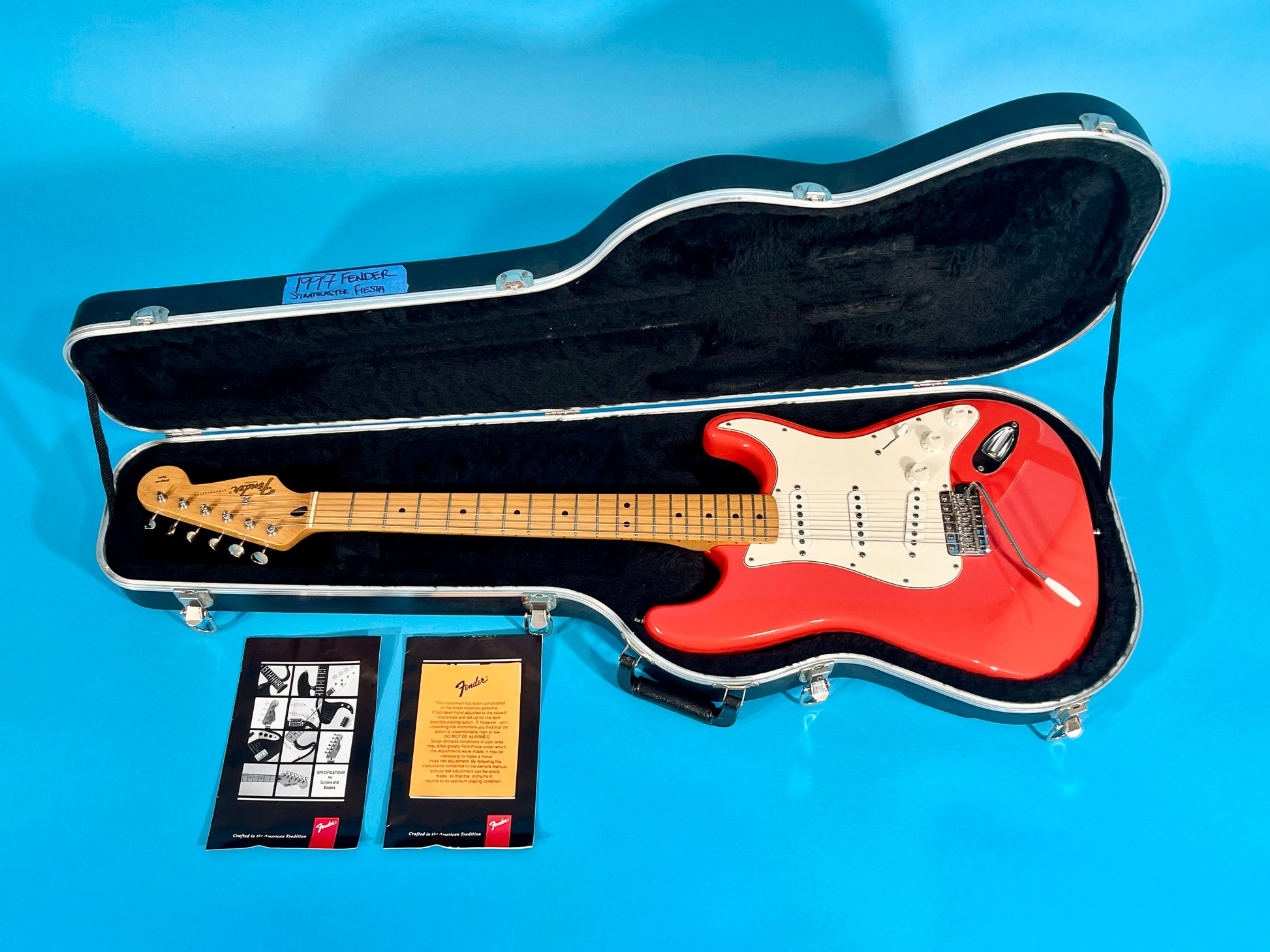 Here is a vintage 1997 USA Fender Stratocaster California Series model in the best color ever available: Fiesta Red. This amazing unit was constructed at the Fender Factory in Corona California, U.S.A. in 1997. This guitar was purchased new then stored under a bed for all of these years until now. The guitar is very near like-new condition. It is 100% original except the added strap locks...It is set up and ready to go, it needs nothing.
