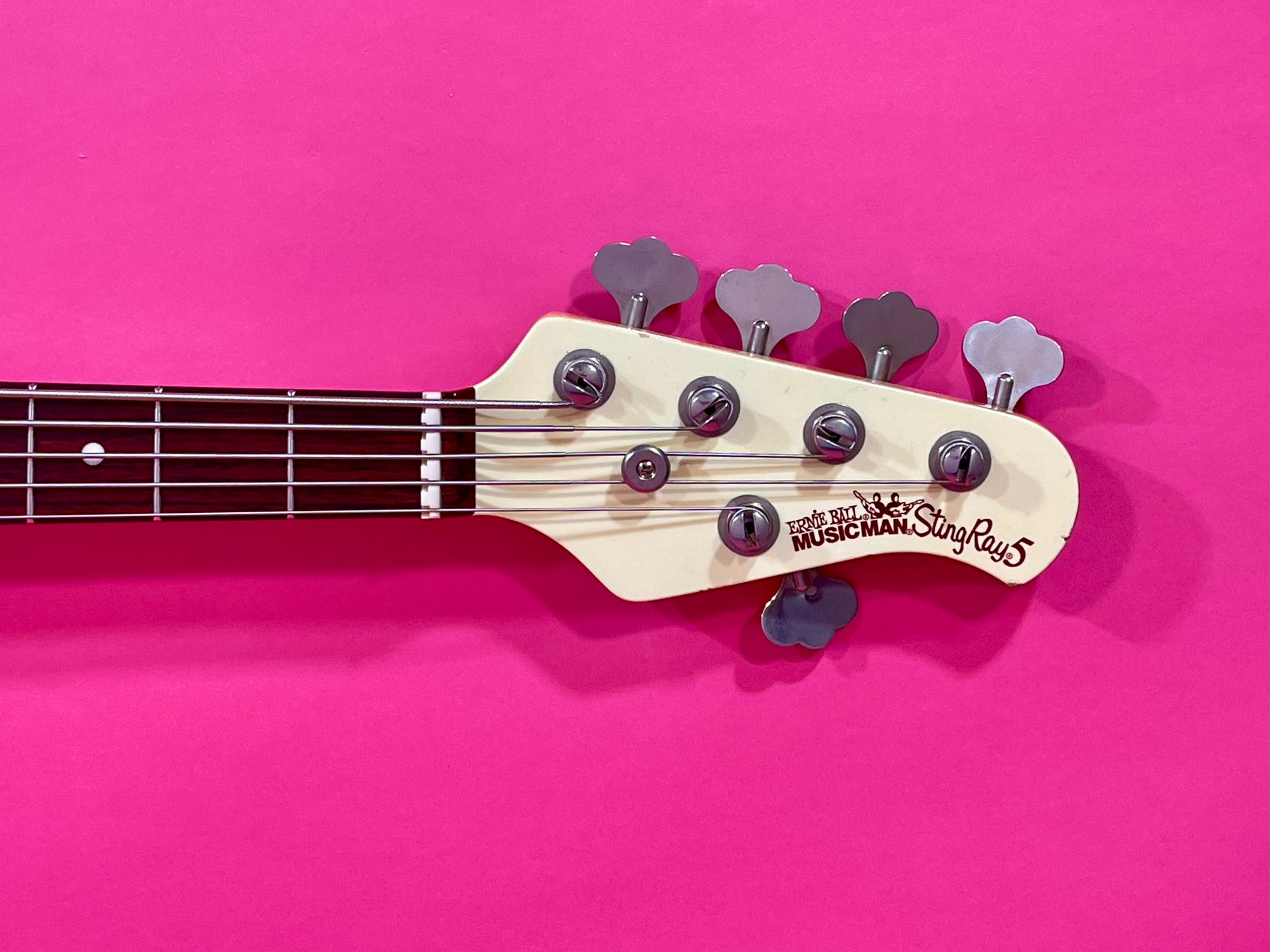 Here is a really unique Stingray 5 with serious vintage mojo in the coolest finish: Vintage Creme/Ivory with a matching headstock! It is a Limited Edition that included the dark Tortoise shell pickguard and Rosewood fingerboard. I've never seen another one like it with these features. It's a great vintage vibe that harkens back to the early 60's P-basses used by The Beach Boys and others... a classic look. This bass has been well cared for over the last 20 years and it is all original with minimal handling evidence. It is set-up and ready to play-it needs nothing.